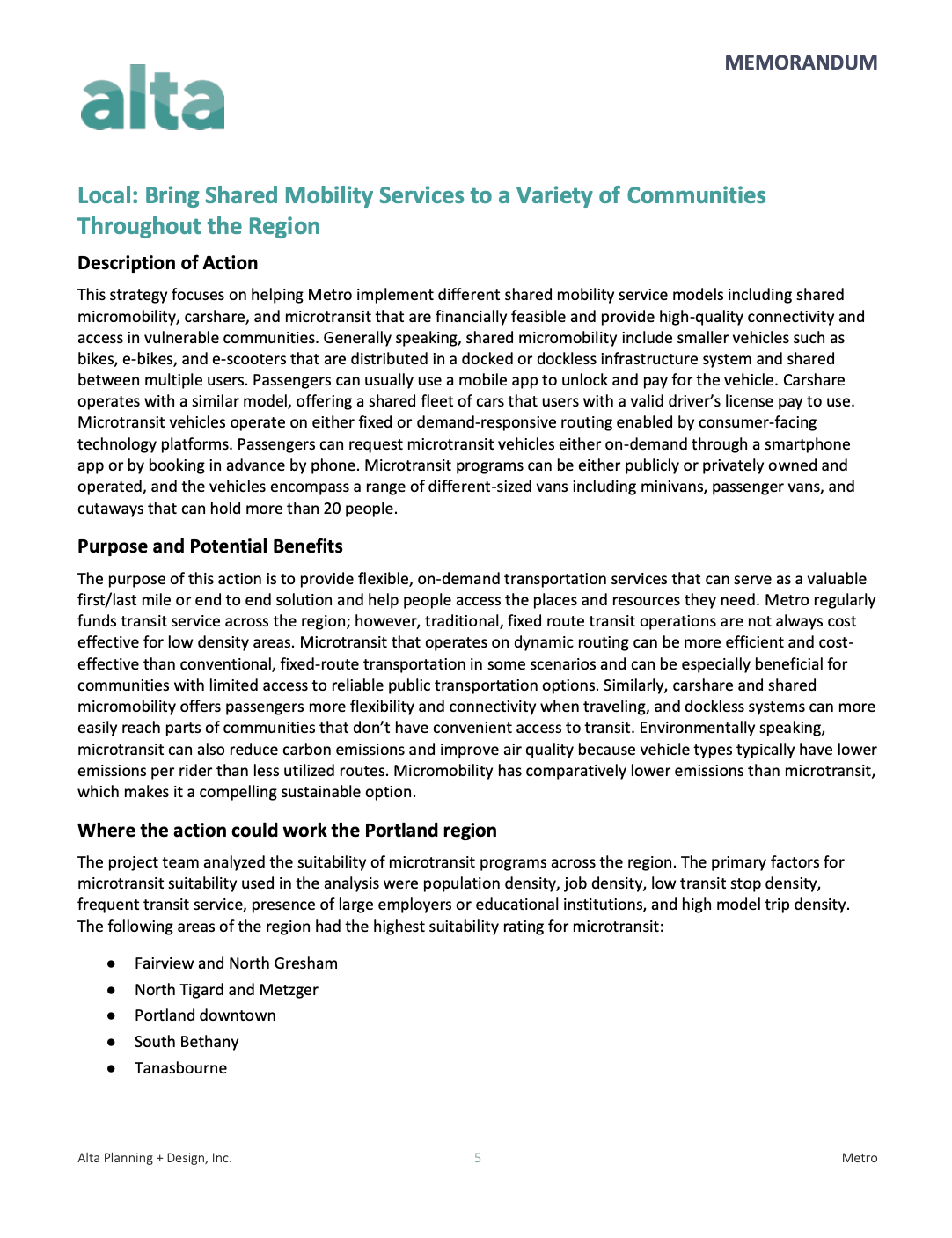 The Oregon Metro Emerging Technology Implementation Strategy proposes implementation actions to support Metro’s regional goals and its Emerging Technology Strategy. The actions encompass projects, policies, and programs centered around new mobility that can be implemented at either the local level in support of regional goals or at the regional level in coordination with local partners.